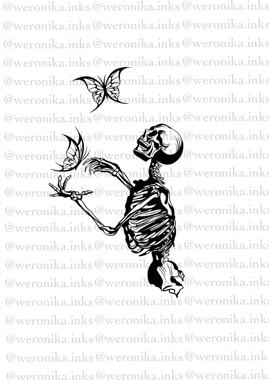 Skeleton & butterflies tattoo